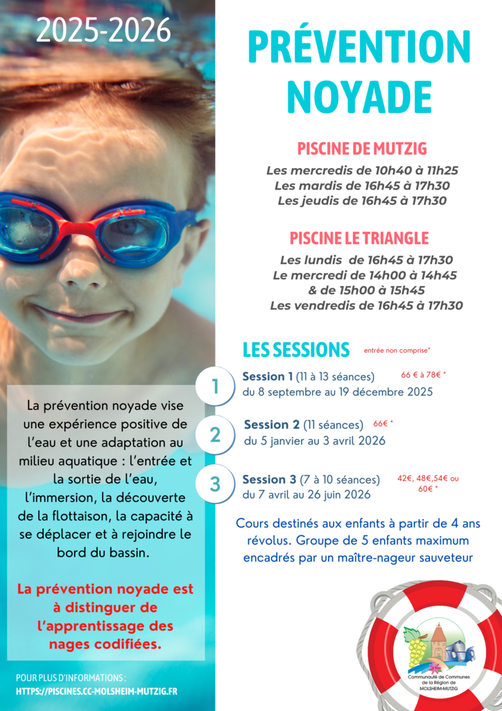 La prévention noyade vise une expérience positive de l’eau et une adaptation au milieu aquatique : l’entrée et la sortie de l’eau, l’immersion, la découverte de la flottaison, la capacité à se déplacer et à rejoindre le bord du bassin.